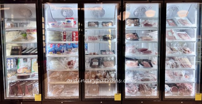 One side of the shop is a whole wall of chillers. It contains a variety of frozen food ranging from sliced sukiyaki beef to seafood and bread.