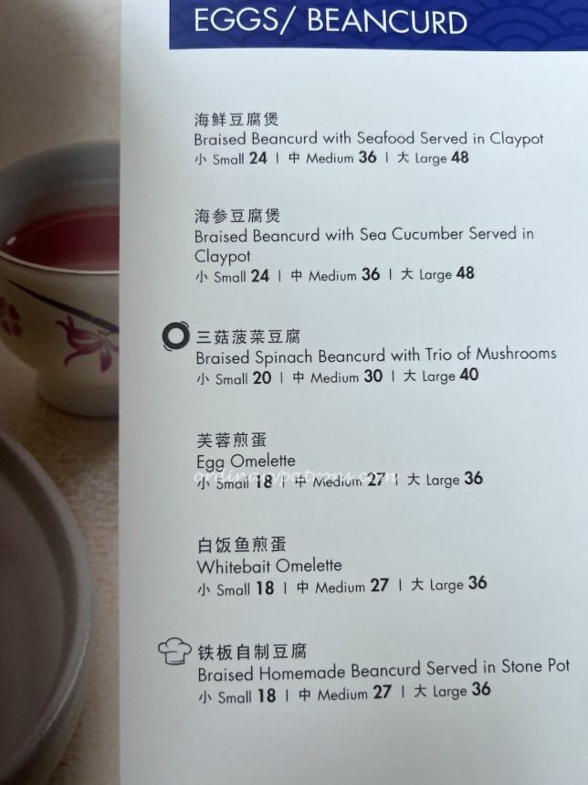 We had a typical dim sum selection – char siew bao ($4.80), crystal dumplings, fish congee with lily bulb ($12.80) and cheong fun with char siew. The congee and cheong fun were very good while the rest were ok. The prices are similar or perhaps even lower than comparable Chinese restaurants in town.