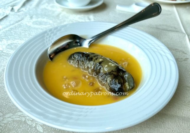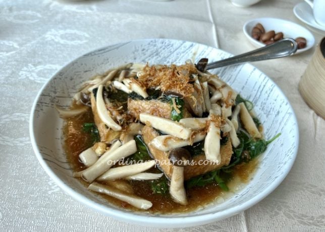 The braised sea cucumber was a beautiful dish but we thought that it was too hard and bland. A better choice was the braised spinach tofu with a trio of mushrooms ($20). It was a substantial dish even though it was only a small serving. The taste of the mushroom and gravy was rich and pleasant. It is the type of dish that goes well with steamed rice.