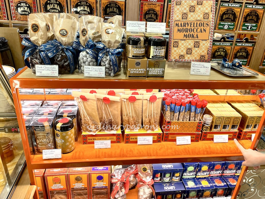 In Singapore, Bacha Coffee has a similar bling factor as TWG cafe. Lots of glossy gold packaging and a wall of coffee containers welcome visitors to the cafe on level one Ion Orchard. Here are some pictures of snacks and products available on display.