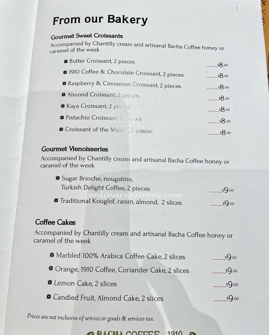 The highlight at the cafe would be the coffee itself. When we had high tea at TWG, there were a hundred types of tea to choose from. It was a similar situation at Bacha – many types of coffee are listed on the menu. We selected two different types of coffee but I can remember only one of them – Magic Istanbul Coffee. On the coffee menu it is described as having notes of honeycomb and green almonds. I can only tell that it was quite delicious with a bit of nuttiness. Ordered separately, the coffee was priced at $10 each which sounds expensive. But each coffee is served as a pot.