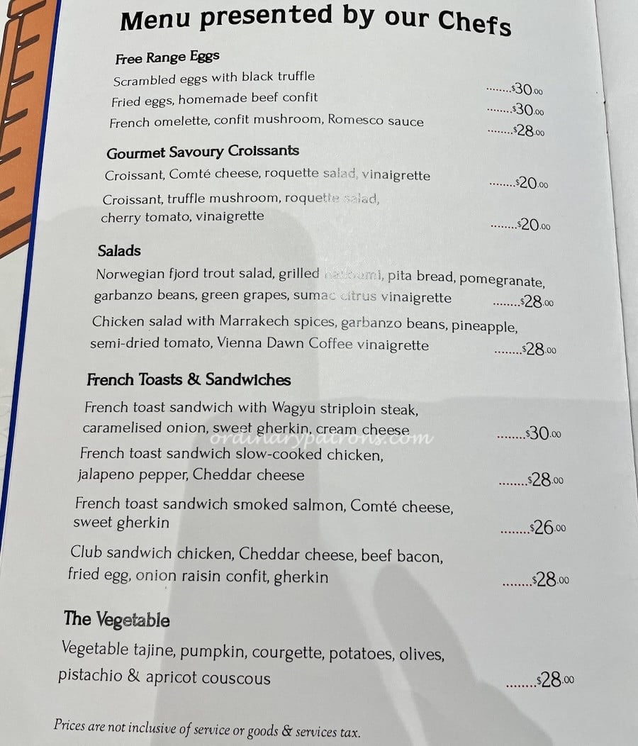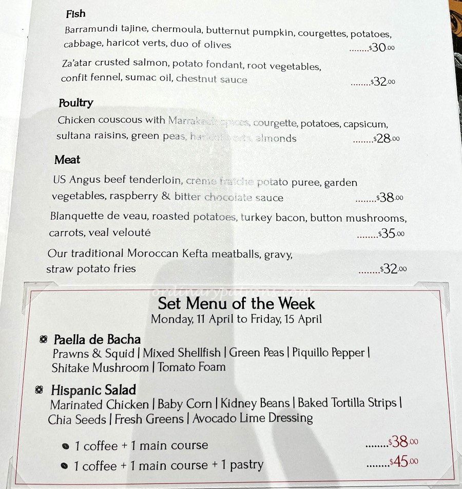 There is more than just coffee and cakes on the Bacha menu. In fact the variety of hot food was wider than we expected. Our eyes were drawn to the set menu of the week. We opted for the coffee + main course + pastry set ($45 per person).