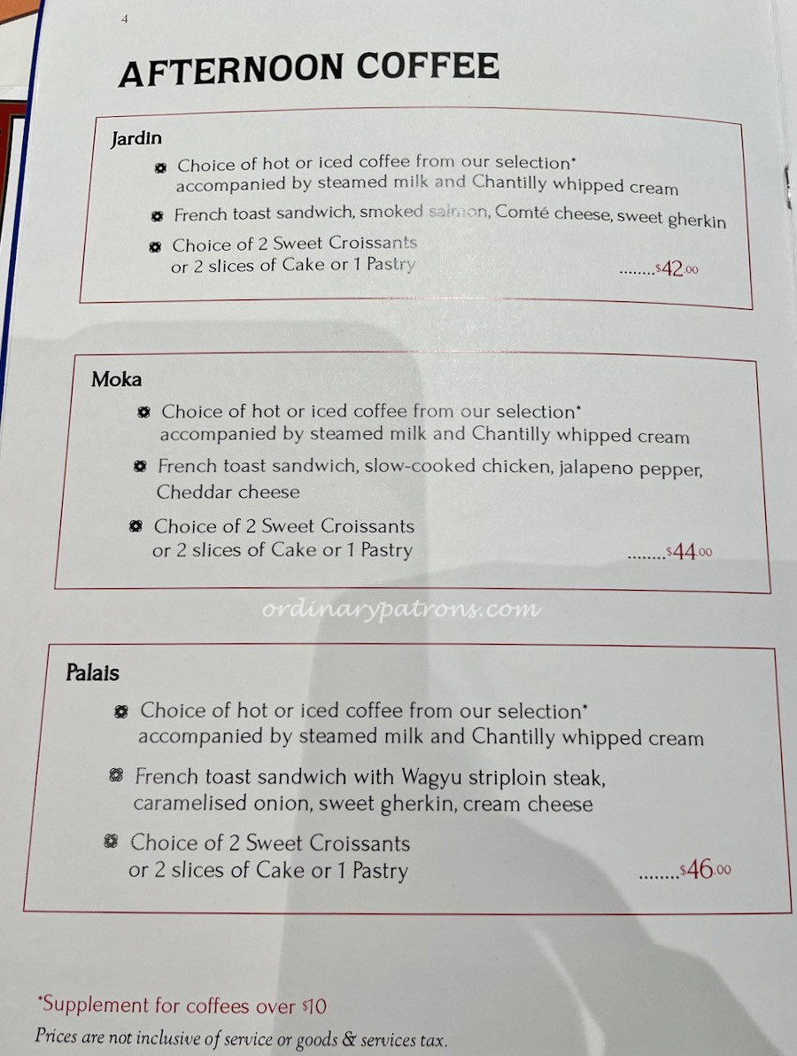 We picked a piece of Opera cake (picture above) and hazelnut mille feuilles. Each was priced at $10 if ordered individually. Both were good but I preferred the latter for its texture.