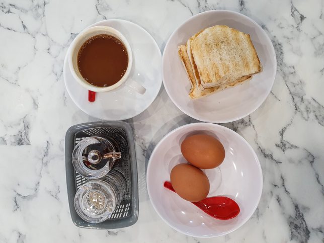 I visited Fishball Story Bugis and had a good old Singapore breakfast there. The Toast & Egg Set was $4.50. It included 2 half-boiled eggs, kaya & butter toast and coffee. The eggs were done the way I liked them, with runny white and golden liquid yolks goey. The toast was fairly ordinary. Coffee was good local kopi.