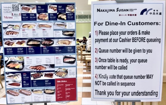There are many food outlets in Takashimaya basement 2. At one end is the food court. Right in the other end is an area where there is a cluster of food outlets. Nakajima Suisan Grilled Fish is usually the most crowded and have queues at mealtimes.