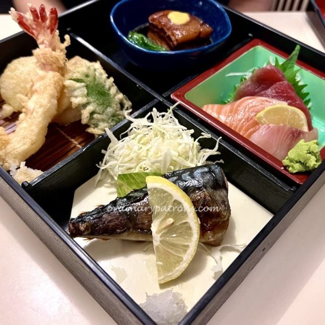 We tried two of the set meals available. The Nijumaru bento ($23) bears the name of the restaurant so we assumed that it would be good. It was indeed a comprehensive bento with compartments containing grilled mackerel, mixed tempura, sashimi and braised pork to go with the rice and miso soup. Everything was nice and the outstanding item was the braised pork which tasted like Teochew style pork – ‘loh bak’. It was cooked till extremely soft and the gravy was very rich.