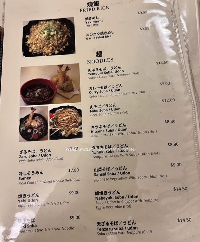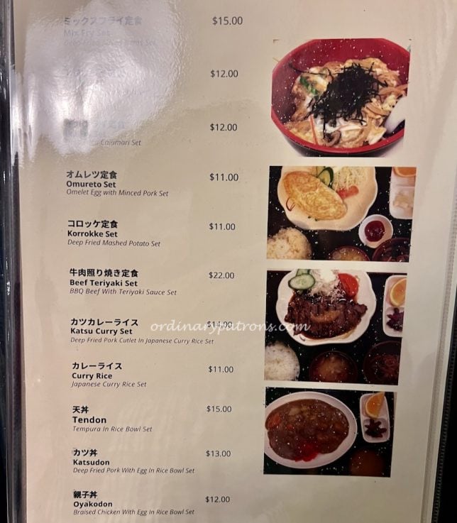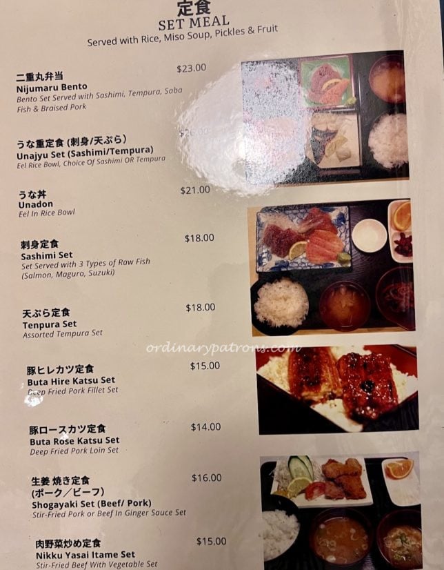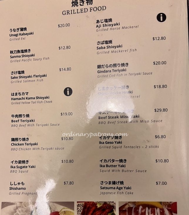 The Izakaya Nijumaru restaurant menu is an extensive one. There are the usual Japanese staples like tempura, grilled items and sushi. We were there for lunch just before last order so we decided to simply go for some set meal selections and some side dishes. Here are pictures of some sample pages from the menu.