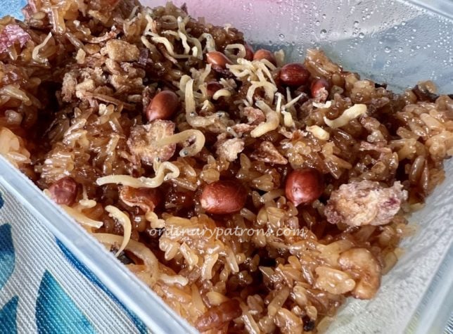 Other than the sweet items, the various kuehs can also be eaten fried. They take on a different character when this happens. The chewy, oily natural skin takes on a thin crisp crust which adds more flavour and texture to the bite. Unless eaten when fresh, we prefer them fried rather than reheating by steaming (except when we feel lazy).