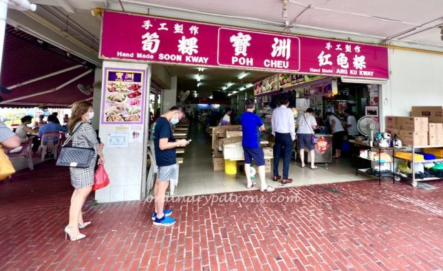 Poh Cheu Soon Ang Ku Kueh (ๅฏณๆดฒ็บข้พ็ฒฟ) is a popular stall selling traditional kueh at Alexandra Village, Singapore. Soon kueh, koo chye kueh, and other snacks are available in this coffeeshop stall near the Alexandra Road / Jalan Bukit Merah junction.