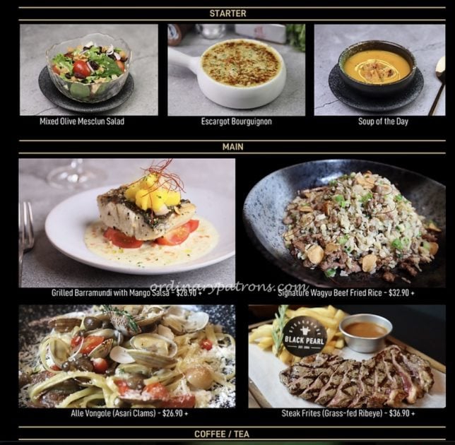 Set lunch and dinner menus are also available at Perle Noire Resto Bar. Here is a picture of the set lunch menu featured on the restaurant website. We tried the set lunch, selecting the soup and escargot for starters and grilled barramundi and ribeye for mains. The price of the Perle Noir Resto Bar set lunch depends on the type of mains selected.