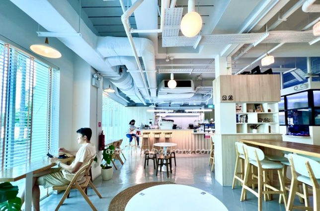 On the left side after the main entrance, we found the new cafe. It sports a contemporary Japandi kind of decor that is popular with cafes and homeowners these days. White walls, plain floor and light wood furnishings all combine to give the cafe a clean and relaxing look. The House Downstairs Cafe is also blessed with big full height windows that fill the place with even natural light.
