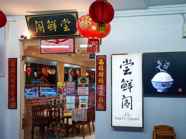 Opera Estate is a low rise residential estate off Upper East Coast Road and Siglap Road. The streets in the estate are associated with European operas and bangsawan (traditional Malay opera). Tasty Court is located in a corner shophouse at the junction of Figaro Street (presumably named after Mozart’s The Marriage of Figaro) and Jalan Tua Kong (a most unoperatic sounding name). There are a few street parking lots just outside the restaurant.