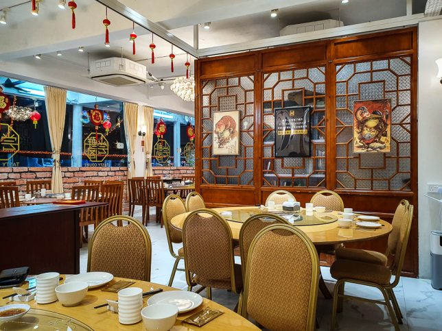 The interior has the stereotypical Chinese restaurant decor with lattice panels and red lanterns; although there is also a red brick wall, which might be a leftover from the European bistro bar previously occupying the premises. The tables in the air-conditioned dining hall are mainly big round tables that can seat up to ten diners. There are a few tables out in the corridor for those who may prefer the kerbside zi char dining experience.