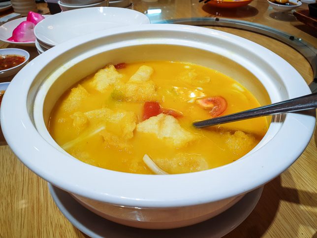The next dish was Fish Maw in Chicken Stock. There were fish maw, vegetables and mushrooms in the yellow broth which was really rich and flavourful. It was one of the favourite dishes of the night.
