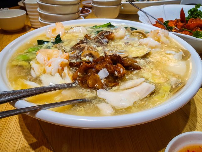 The menu of Tasty Court is quite extensive. Most of the usual seafood, meat and soup dishes found in Chinese restaurants are on the menu. There are various set menus for groups of different sizes.