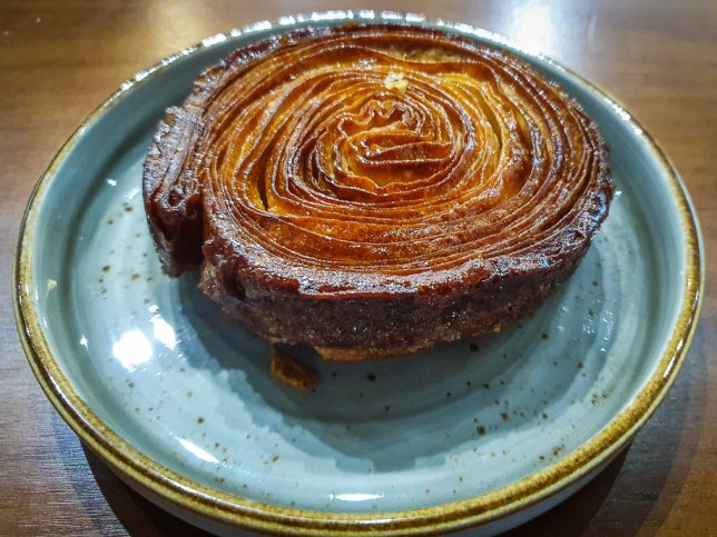 La Levain’s version of the specialty pastry of Brittany, France was delectable. The Koiugn Amann, made with laminated doughs in a labour intensive process, was crusty with a soft buttery centre. Undoubtedly, it gave us layers of enjoyment.