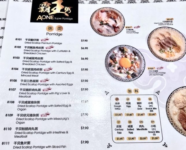 Porridge specialist, A-One has several outlets including this one at the new Jem Kopitiam.