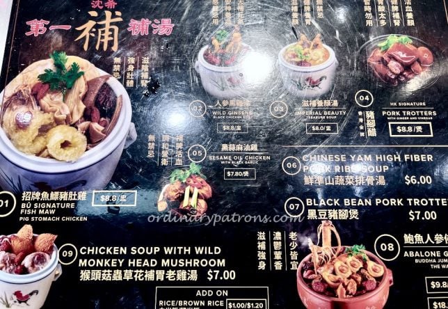 The Herbal Soup stall had a couple of large pots simmering when we visited. This is the stall not to be missed for those who are fond of pigs’ stomach soup. Various other soups such as black chicken herbal and chicken soup with monkey head mushroom are available.
