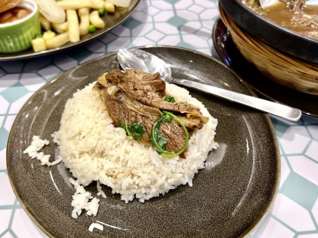 We found slabs of meat in the dark gravy. They were probably from various parts of lamb and yielded different textures and flavours. The meat was cooked till very soft and was easy to eat. The slight gamey taste of lamb was well integrated with the other ingredients to make this a friendly dish. This is dish we would love to eat again on a future visit to Hainan Story Jewel.