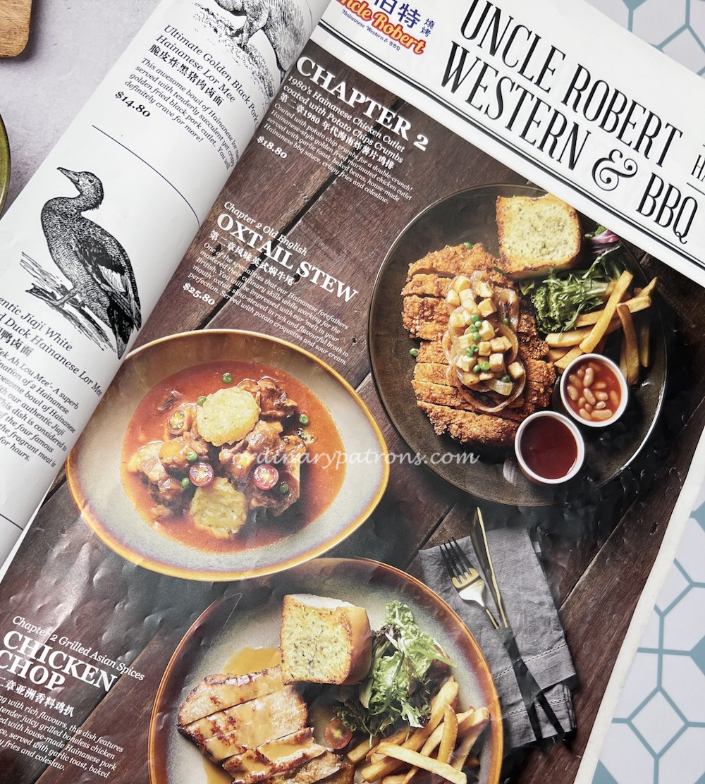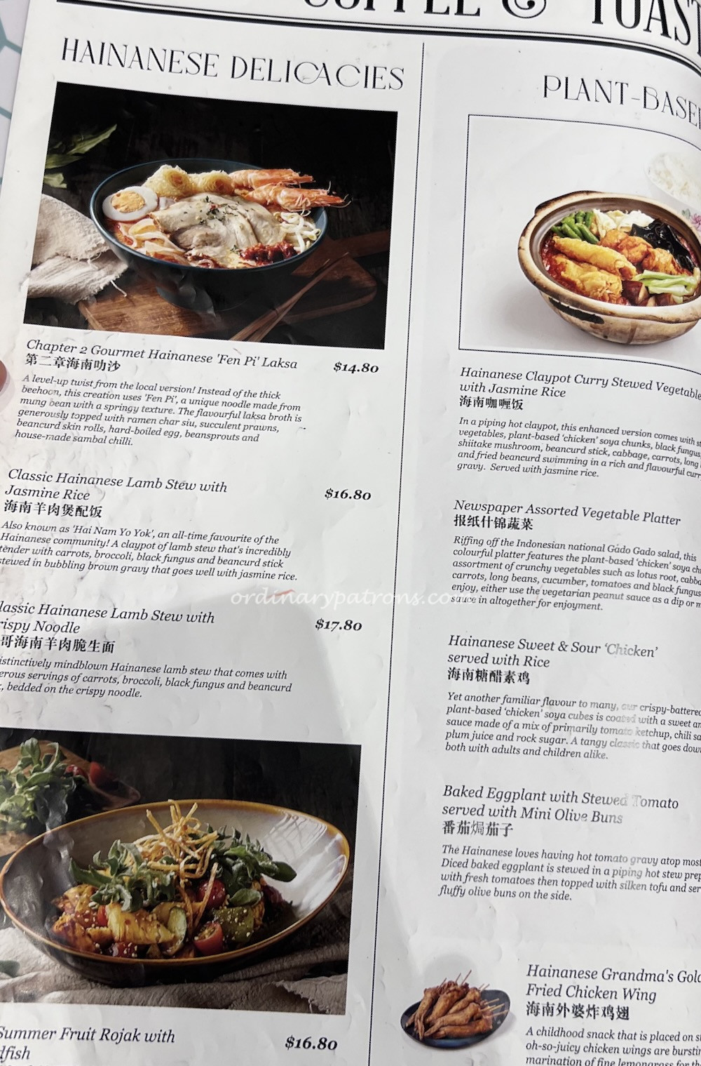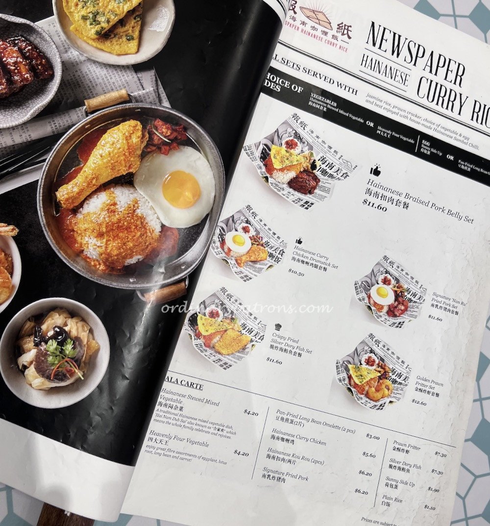 The Hainan Story Jewel menu is creatively designed like a newspaper. But the paper quality and glossy photos are better than any newspaper we have seen. The food items are categorised according to their respective sub-brands. Here are some sample pictures of the menu. The choice of Hainanese cuisine at Jewel Changi is extremely wide. It was a case of so much choice but too little tummy space. We finally decided on Classic Hainanese Lamb Stew with Jasmine Rice ($16.80), 1980’s Hainanese Chicken Cutlet Coated With Potato Chips Crumbs ($18.80) and Pan-Fried Long Bean Omelette ($3).