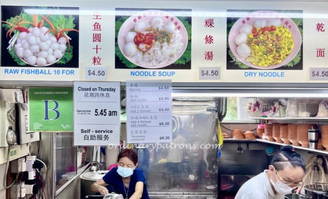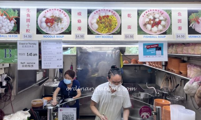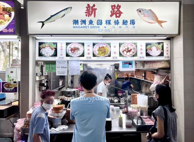 Xin Lu Teo Chew Fishball Noodle, sometimes referred to as Margaret Drive fishball noodles, is one of the most popular stalls in Mei Ling. The star attraction here are the handmade fishballs. They can be purchased raw ($4.50 for ten) to be cooked at home. These are especially popular during Chinese New Year when many people order in advance the fishballs for steamboat dinners at home.