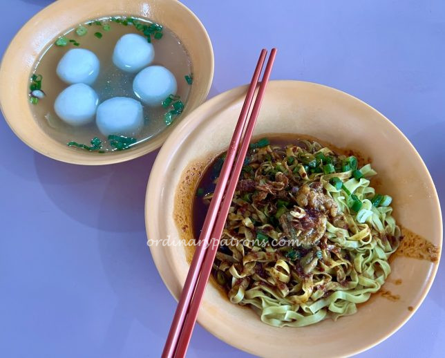 Here is a picture of our dry mee pok with fishball soup. Other than the price, everything else remained roughly the same – five ‘bouncy’ fishballs and a bowl of dry mee pok with a good measure of sauces and pork lard. Compared to the one from our last post, the portion of noodles seem to have increased.