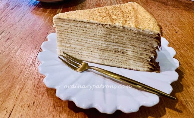 We only had snacks and coffee that day. We selected a croissant with scrambled eggs ($4 + $3) and a slice of Mille Crรชpes ($9). Both were nice but not exceptional.