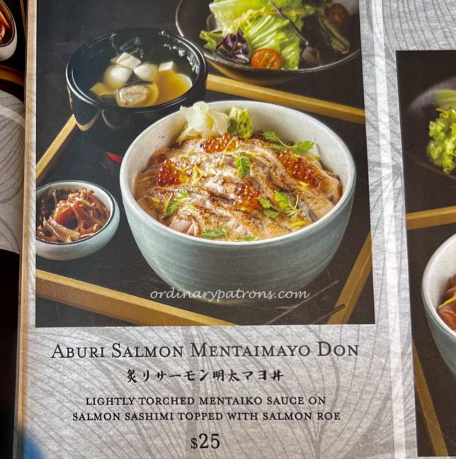 Our least favourite item at our Ka-EN Grill & Sushi Bar lunch was the Aburi Salmon Mentaimayo Don ($25). We found the dish to be drowned with too much mayo sauce for our liking. Although the same price as the beef and pork bowls, our enjoyment of this one was much lower by comparison.