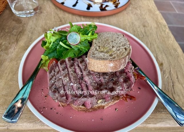 Being in a Australian cafe, we could not resist trying the Tassie steak sandwich which was made with Tasmanian King Island sirloin. It did not look as attractive as the mushroom toast. Taste-wise it was ok but there were quite a few sinewy parts that made it hard to eat, especially as a sandwich.