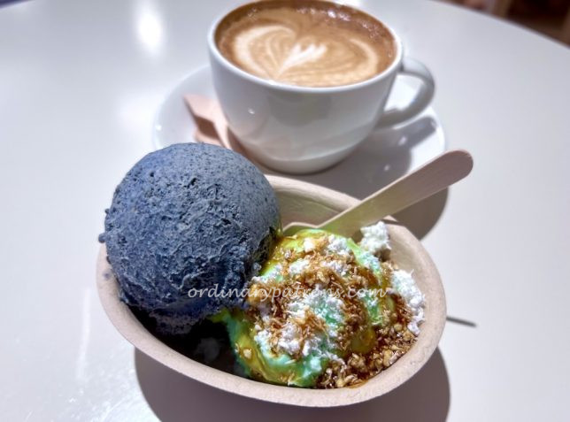 A fair selection of ice cream flavours was available. We selected a couple flavours – black sesame and ondeh ondeh.