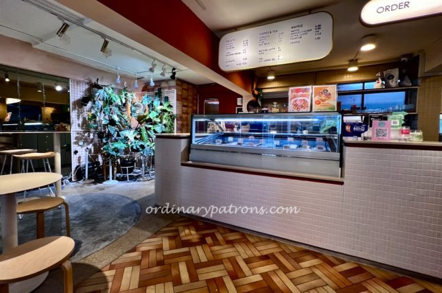 There is a spacious foyer with natural ventilation outside the cafe entrance. The simple furniture and spotlighting give the place a welcoming feel. A wide glass door thoughtfully provides easy access for baby prams and wheelchairs.