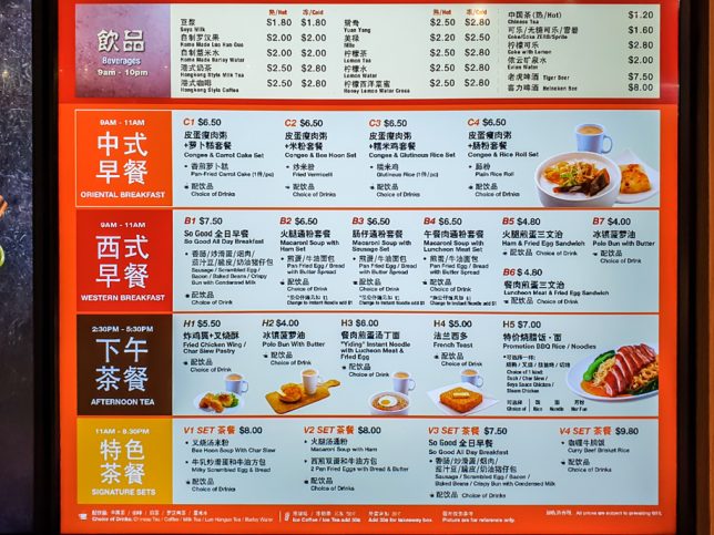 We visited So Good Char Chan Tang i12 Katong in the afternoon and ordered a Polo Bun Set ($4) and a French Toast Set ($5). GST would be added to the bill but there was no service charge, as it was a self-service cafe.