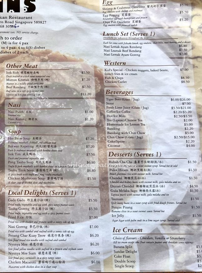 Ivins Peranakan restaurant in Binjai Park, Bukit Timah is a place where time seems to have stood still for decades. The restaurant looks the same. And so does the menu, except the prices (which we shall discuss later).