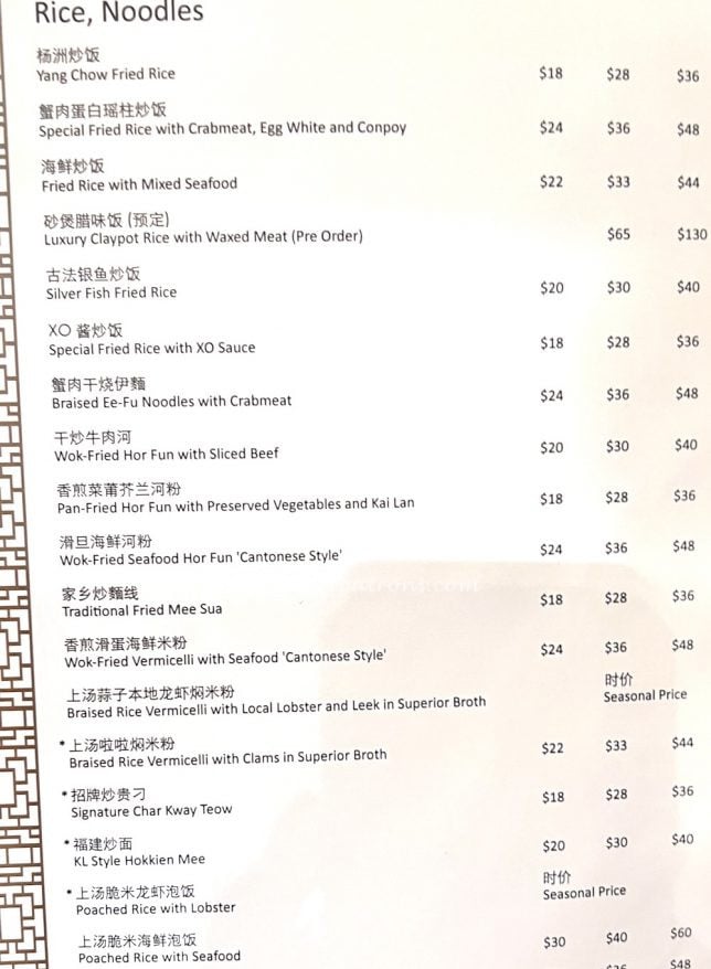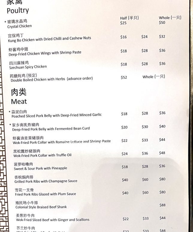 The design of this restaurant is bold and bright. With the big displays of famous wine and whisky brands in different parts of the dining hall, it is clear that beverages are given as much prominence as food in this f & b space. Indeed, Famous Treasure Chinese restaurant has an outstanding wine list. You can see more pictures of the restaurant and some parts of the wine list in our 2018 post.