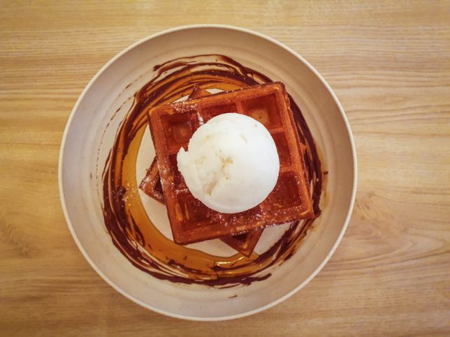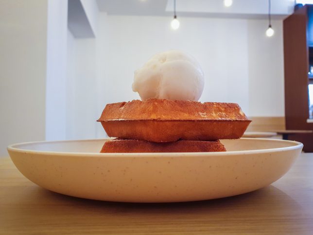The waffles were buttery and aromatic with the standard crisp exterior and a soft interior. Good enough to eat on its own – even more delectable with a dash of syrup; and taken to another level when enjoyed with the lychee sorbet.
