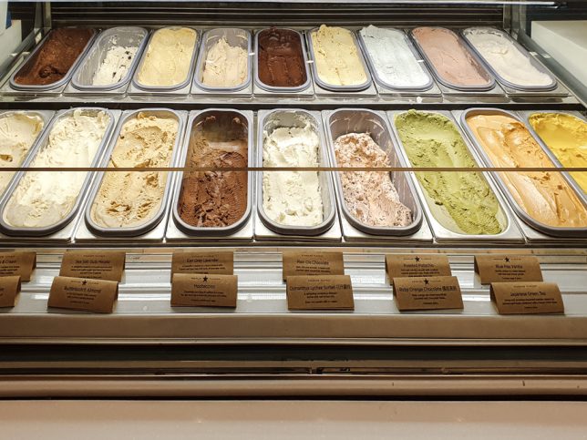 The flavours of ice cream and sorbet available will vary. When we visited, the available flavours included Ruby Orange Chocolate, Osmanthus Lychee Sorbet, Japanese Green Tea, Earl Grey Lavender, Butterscotch Almond and Blue Pea Vanilla.