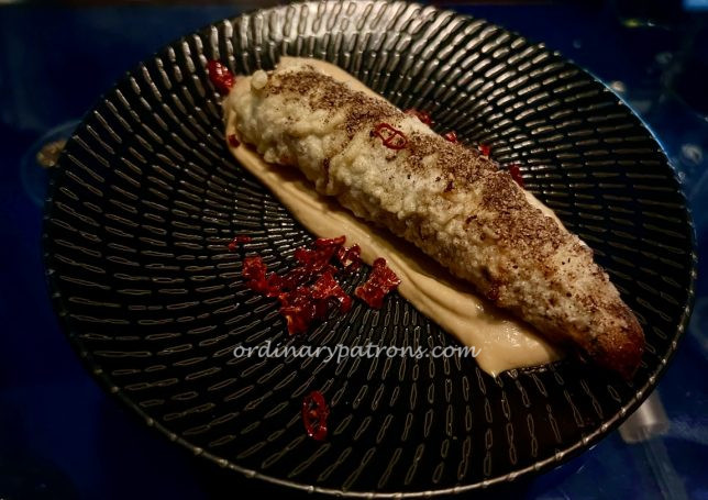 Here are the dishes we ordered from the Main Dining menu – Crab and Pork Sticker ($12 each piece), Eggplant & Miso ($16) and Pakistani Lamb Chops ($48). Generally, these dishes tasted better. The crab stickers were the best dish that day, with sufficient crab meat inside these thin dumplings to make their presence felt.