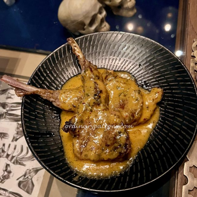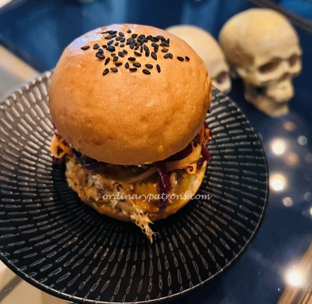 At a separate end of the premises is the Burnt Ends Cocktail Bar. This area has different vibes from the restaurant area. Dark and brooding with skulls everywhere, this is like a Batman movie. Obviously having drinks here may be more appropriate, but there are three dining options available here before 11 pm – Cocktail Bar Counter, The Study Room and Cocktail Lounge Tables.