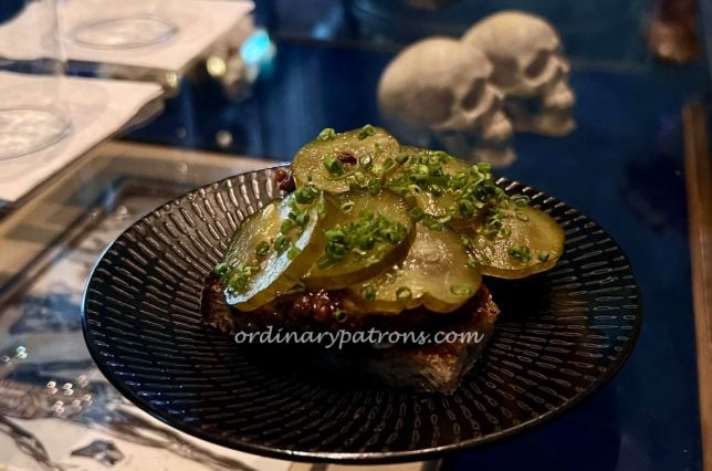 The Cocktail Bar opens earlier (5 pm) than the main restaurant (6 pm). It has a set menu that costs $250 for 2 pax and is described as Burnt Ends’ Classics.