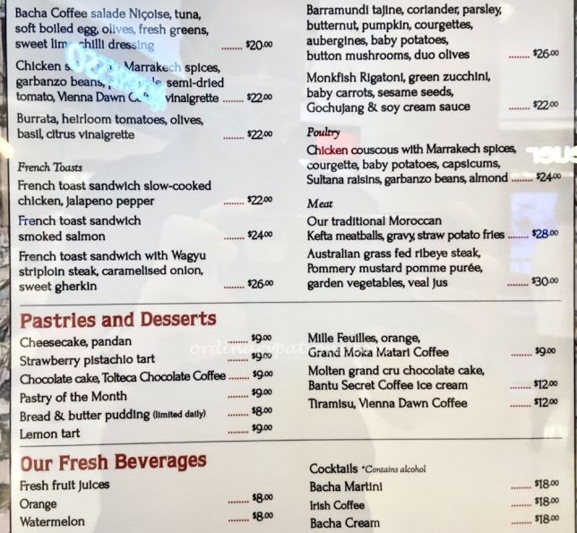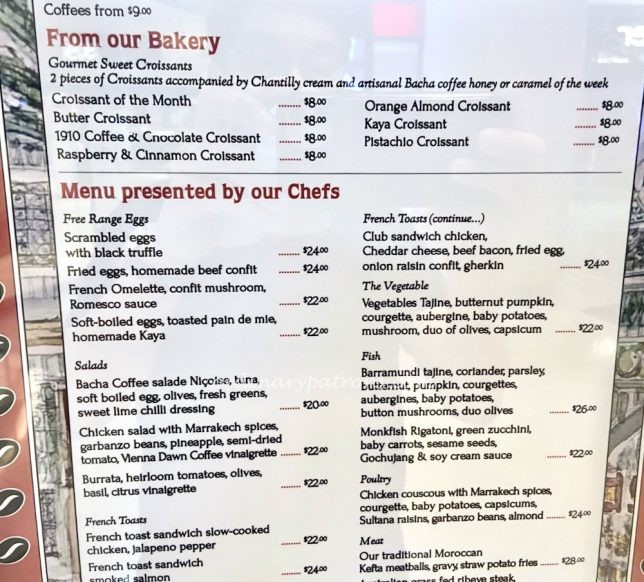 Located next to the Nespresso shop, the opulent cafe from Morocco has continued to draw crowds since its opening. It is a beautiful cafe to enjoy coffee at Ion. Here are pictures of portions of the Bacha Coffee Ion Orchard Menu (Nov 2021).