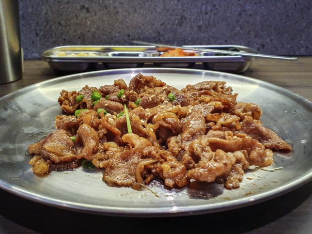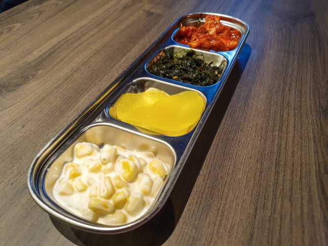 Even without special promotions, the prices at Ajumma’s are very reasonable. We ordered the Pork Bulgogi ($14.80) which came with rice, 4 side dishes and hot tea; and Crispy Samgyeopsal ($14.90), which also came with a tray of 4 sides dishes (which we understand to be refillable).