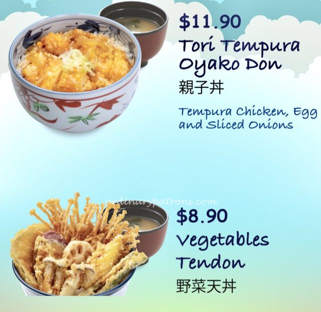 The Aomori Tendon ($15.90) was one of the premium items on the menu. As you can see the bowl was overflowing with fried seafood items – prawn, salmon, oyster with a few vegetable items. The batter used for this is also different from the other tendon items. It is said to contain seaweed flakes. We thought that it was more tasty than the regular ones. Definitely worth the extra bucks.