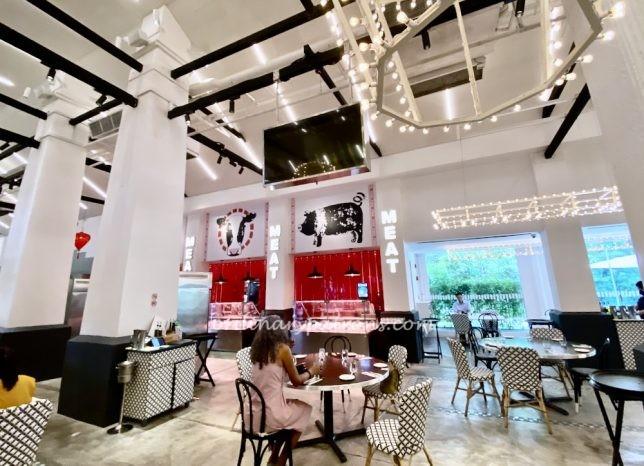 Several years ago, the former Jones the Grocer at Dempsey Hill was transformed into a new restaurant in a grocery store named The Dempsey Project. It retained roughly the same structure, but with some sprucing up. The space inside has shelves with colourful and appealing groceries and lots of green plants. Read more at our post The Dempsey Project โ Keeping up with Joneses