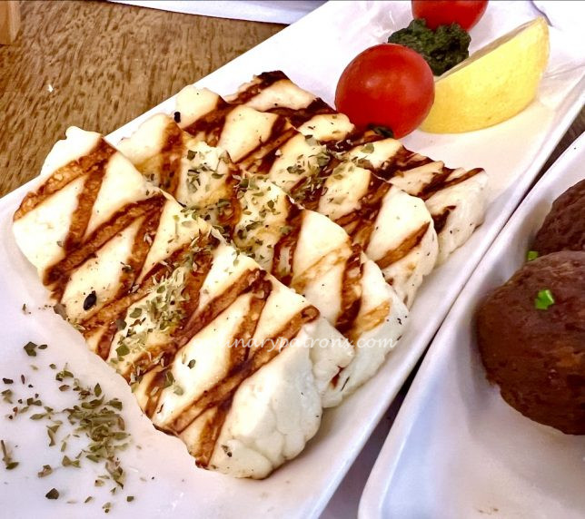 There are a few choices of fried and grilled cheese on the Bakalaki menu. We selected the grilled Halloumi cheese ($17.90). Grilled cheese is not a common dish but works well as an appetiser. The cheese is very mild – in fact it reminded us of firm tofu (tau kwa). Together with the herbs and a squeeze of lemon, it is a refreshing snack.