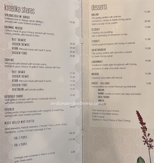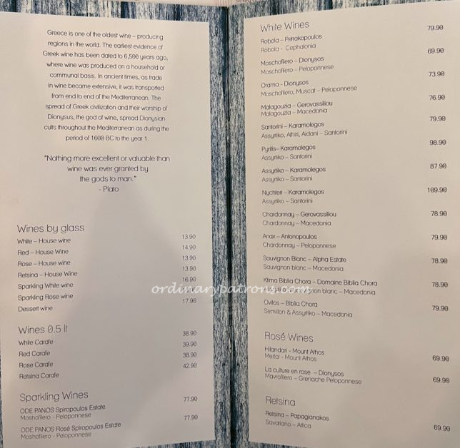 The Bakalaki Greek Taverna menu is extensive. Here are some sample pictures of the menu and a page from the Bakalaki wine list.