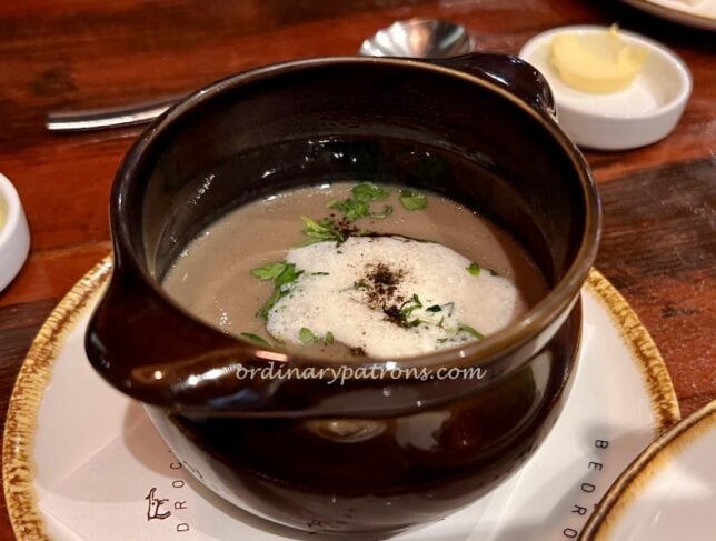 Our starters were fine but not exceptional. Char-grilled baby gem (picture above) is a type of small lettuce. It was grilled with a bit of char on the edges and served with bacon, parmesan cheese and tomato. The mushroom soup (pic below) had a nice earthy flavour.