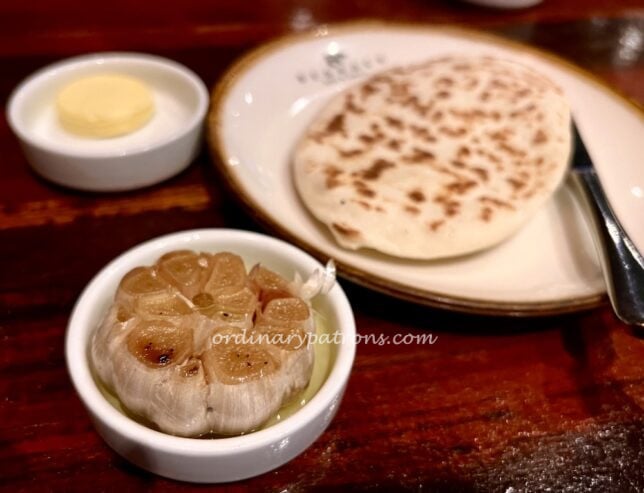 We started our lunch with some warm flat bread served with butter and a clove of toasted garlic. This has been a tradition at Bedrock since we started going many years ago. It is a very good way to start lunch.