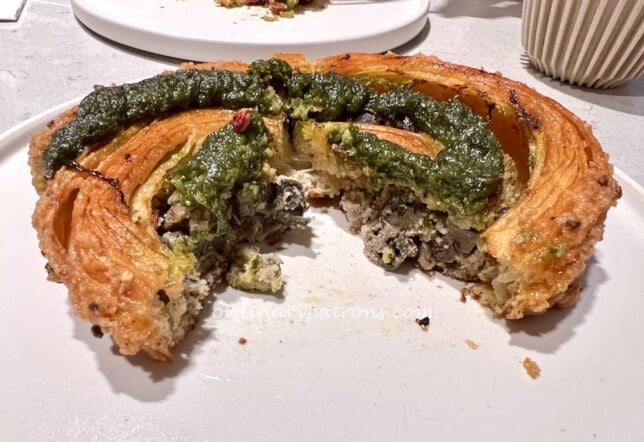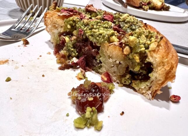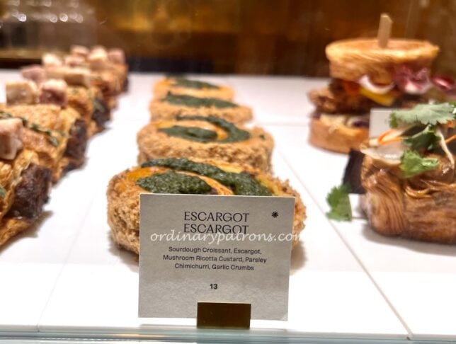 This pastry is a sweet one. Do not confuse this with the Escargot Escargot which is a savoury version. The “escargot” refers to the spiral snail shape of this type of pastry. The Le Matin pistachio escargot was packed with lots of nuts and dried fruits. It seemed like a high-end style of Danish pastry which will taste good with a strong cup of black coffee.