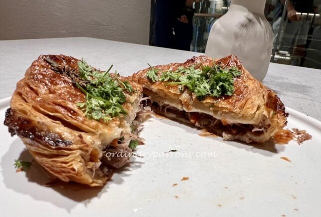 The lamb pie was a plain looking flaky puff pastry which contained some 8-hour braised lamb stew. The lamb content was robust yet clean tasting. This must be one of the most memorable meat pies we have eaten for a while. It was our favourite of the day. But beware, this pie is heavy and oily. One pie would be sufficient for lunch on a day I am not so hungry.