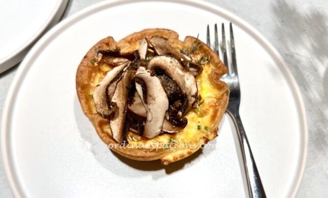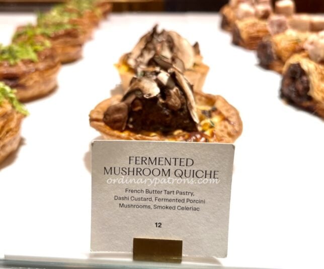 This is a quiche with a heap of mushrooms on top of it. The quiche part was a smooth eggy component. The heap of earthy mushroom gave it a good balance of flavours. This was an unusual type of quiche and was our second favourite item of the day.